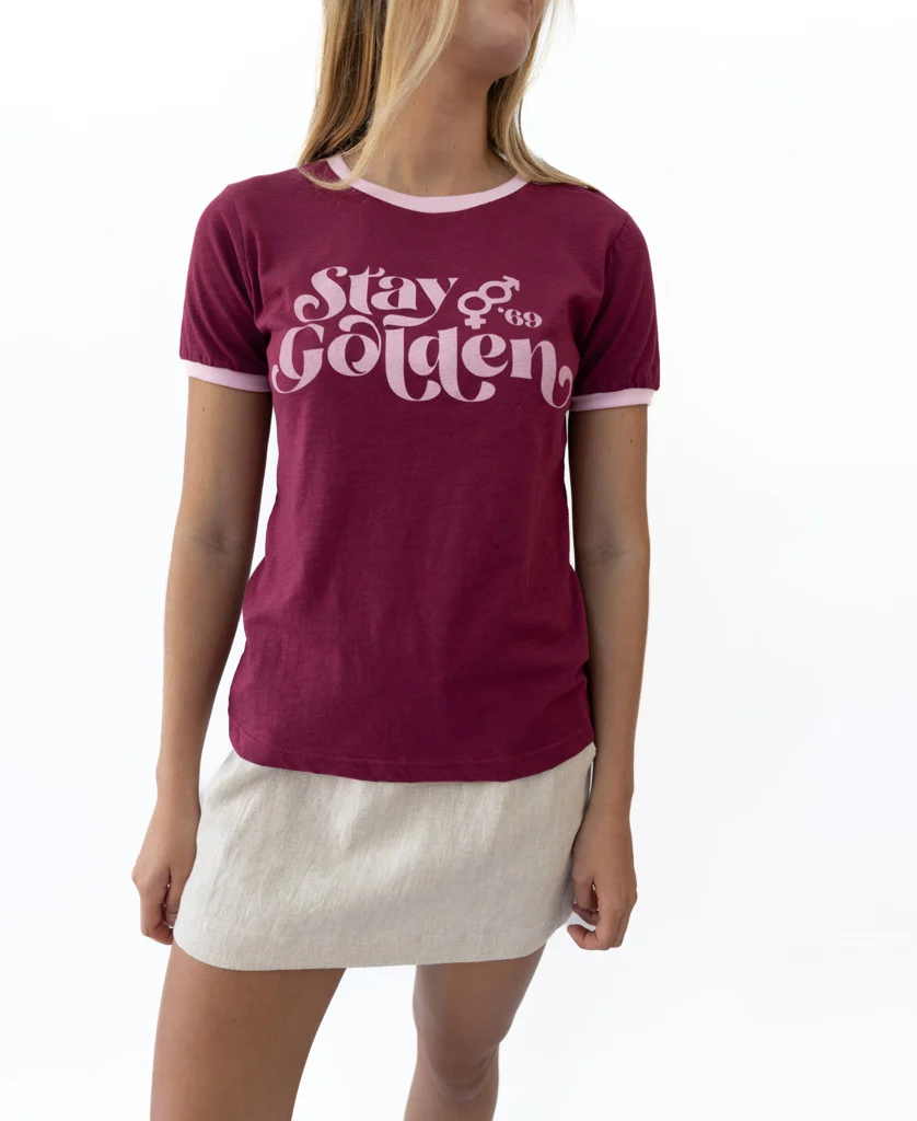 Ringer Tee in iconic retro Stay Golden print.